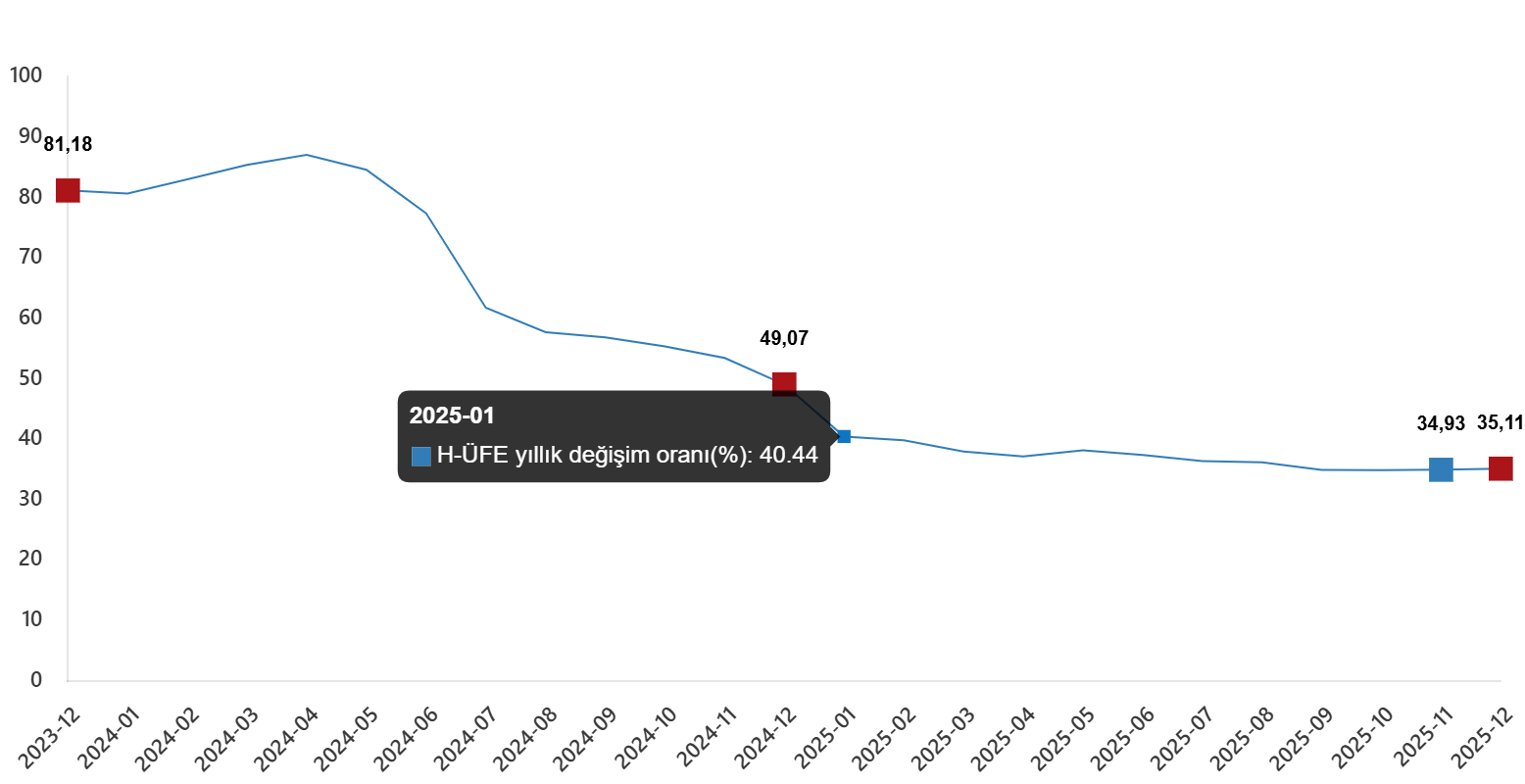 H-ÜFE yıllık değişim oranı(%), Aralık 2025