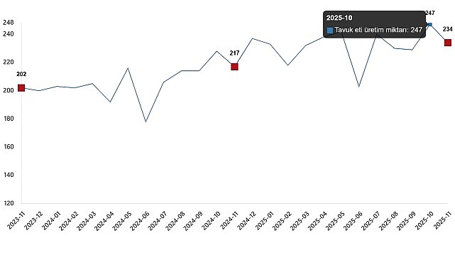 Tavuk eti üretim ölçüsü, Kasım 2025