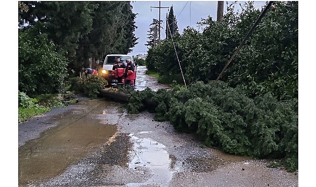 Milas Belediyesi takımları gün uzunluğu tesirini sürdüren ağır yağışlar nedeniyle gece boyunca alandaydı.