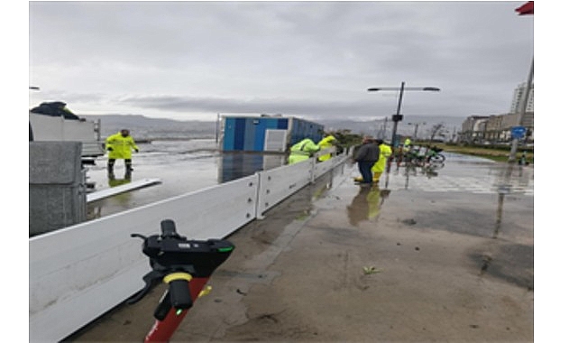 İzmir Büyükşehir Belediyesi tarafından Kordon’da inşa edilen süreksiz fırtına duvarı, sabah saatlerinde tesirli olan sağanak yağış ve fırtınanın yol açabileceği deniz taşkınını engelledi.
