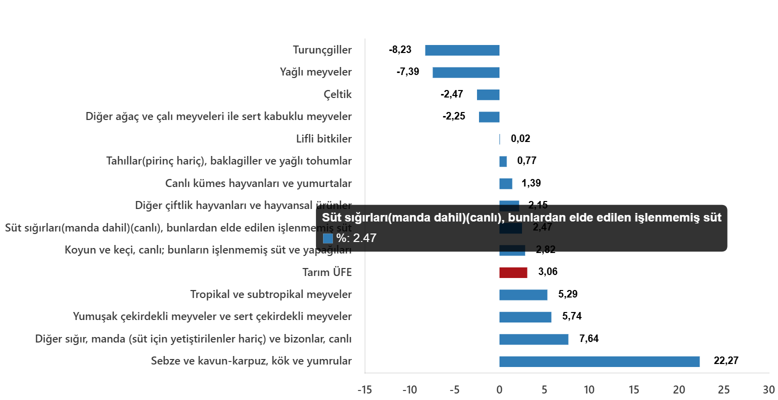 Tarım eserleri üretici fiyat endeksi (Tarım-ÜFE) yıllık %36,01 arttı, aylık %3,06 arttı