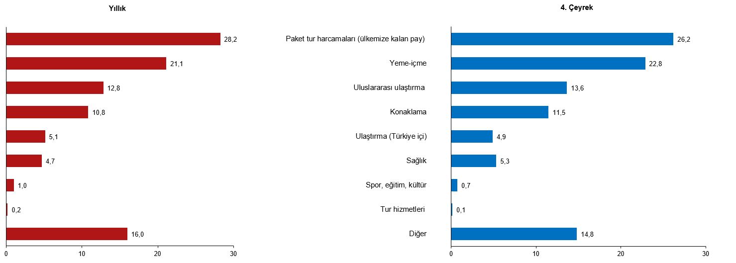 Bu çeyrekte ziyaretçiler tarafından yapılan harcamaların 11 milyar 28 milyon 37 bin dolarını şahsî harcamalar, 3 milyar 911 milyon 317 bin dolarını ise paket cins harcamaları oluşturdu.